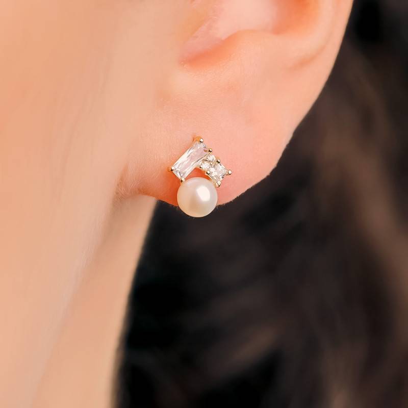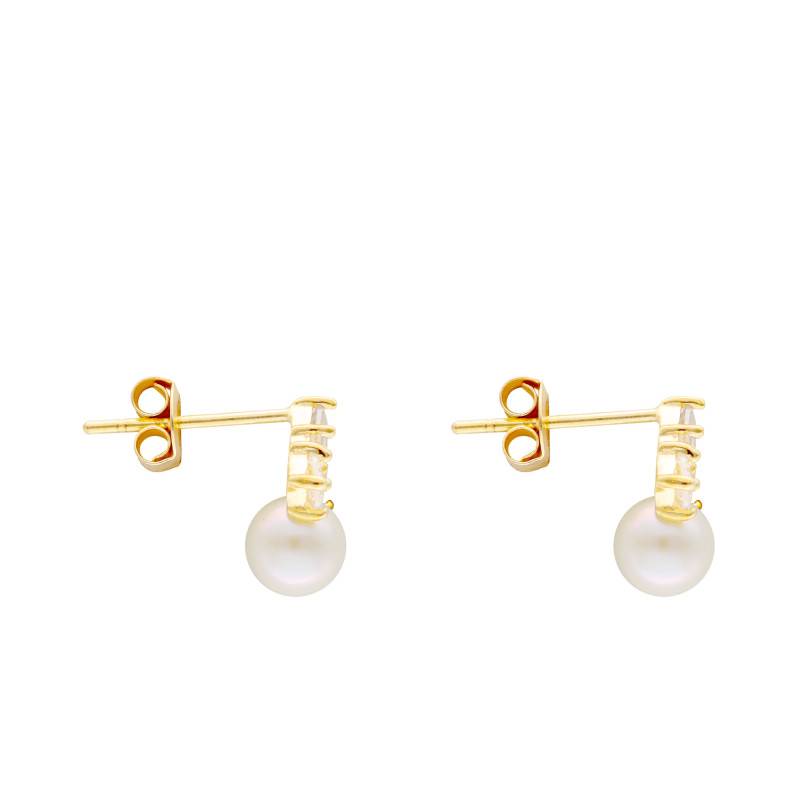 Les Boucles d'Oreilles en Or & Oxyde de Zirconium et Perle de Culture d'Eau Douce captivent par leur design subtil et envoûtant. Fabriquées en Or Jaune de qualité 375/1000 (9K), elles offrent une finition polie et brillante. Les délicates puces dévoilent un jeu éclatant de lumières grâce à l'oxyde de zirconium serti à griffes, tandis que les perles d'eau douce d'un diamètre de 4 à 4,5 mm ajoutent une touche de pureté et d'élégance. Leur poids léger de 0,51 g garantit un port confortable, sublimant votre allure avec charme et discrétion.