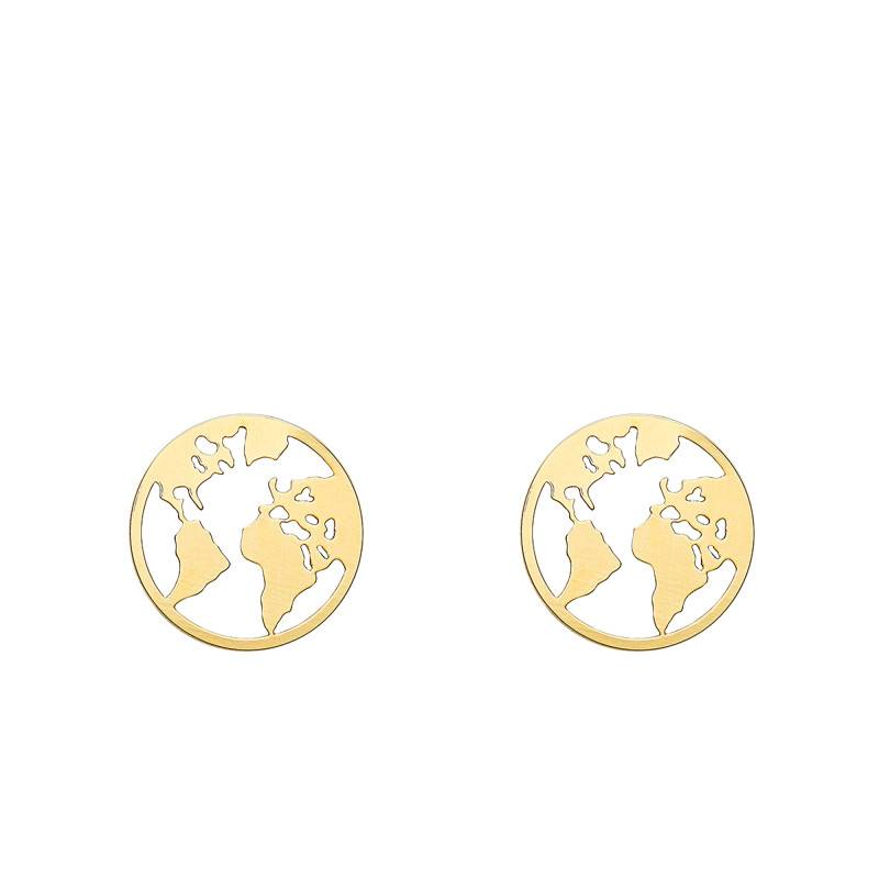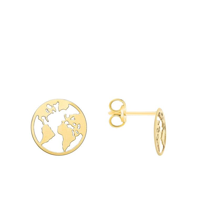 Comme cette magnifique paire de boucles d'oreilles réalisée entièrement en or jaune 375/1000 (9K). Ces boucles de type puces d'oreilles ont un diamètre 8,40 mm. Elles ont la particularité de mettre en avant la carte du monde découpé. Avec cette paire de boucles d'oreilles vous allez voyager ! Pour ne pas les perdre, elles sont dotées de fermoirs type poussette papillon. Enfin, comptez un poids plume d'or de 0,40 gramme.