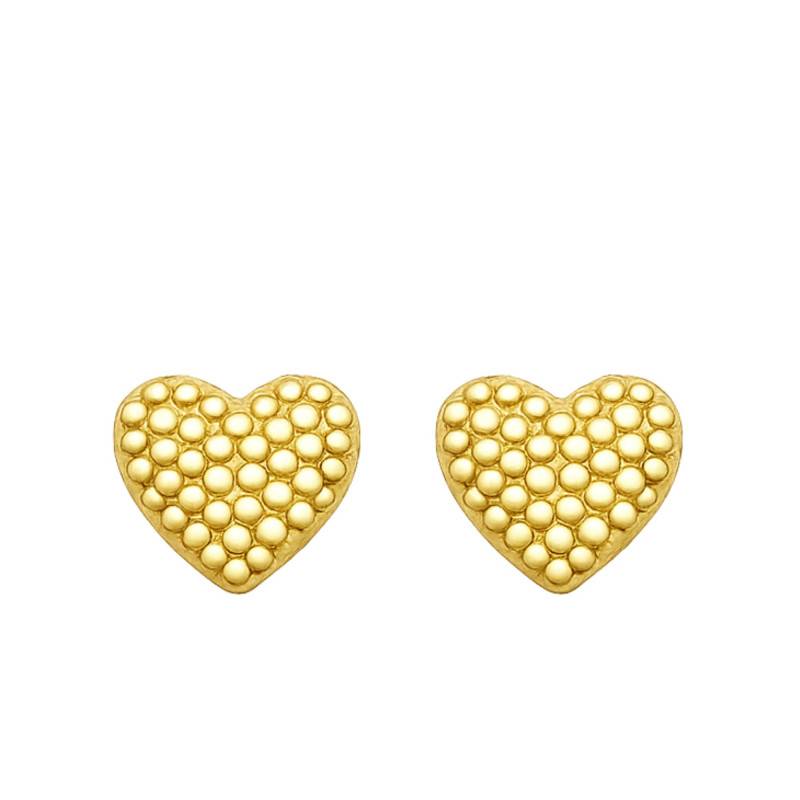 Laissez-vous envoûter par les Boucles d'oreilles Coeur Perlées en Or Jaune 375, une création où la féminité et l'enfance trouvent refuge. Ces précieuses puces arborent une finition perlée sur un cœur de 9,00 mm de longueur, 5,50 mm de largeur, 4,00 mm de hauteur et un poids de 0,39 g. Coulant de lumière dorée, l'or 375/1000 (9K) illumine chaque mouvement. S'attachant délicatement avec des poussettes papillon, leur éclat réside dans leur simplicité.