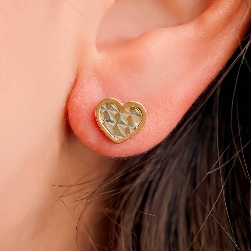 Découvrez les Boucles d'Oreilles Coeur Scintillant en Or Jaune 375, une symphonie d'éclats et de douceur. En or jaune, chaque boucle capture la lumière d'une manière unique, grâce à sa finiture polie et brillante. Ces puces d'une hauteur de 7,50 mm et d'une largeur de 9 mm, sont la promesse d'un charme discret mais éternel, pesant seulement 1,30 g. Conçues pour la femme moderne, elles sont protégées par une garantie de 2 ans.