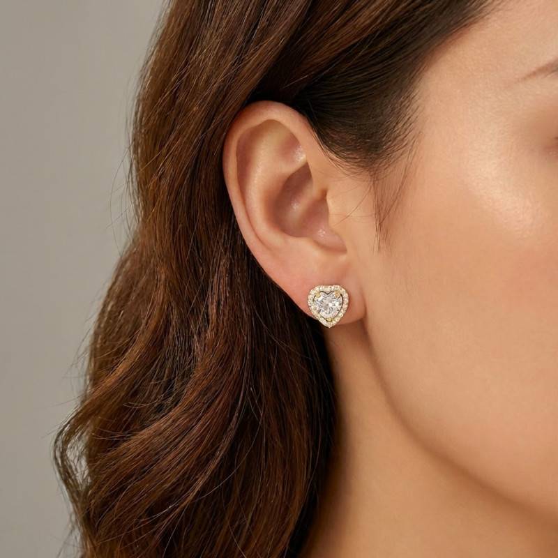 Ces Boucles d'Oreilles en Or jaune 375/1000 (9K) séduisent par leur forme cœur, à la fois romantique et intemporelle. Chaque boucle mesure 9 x 9 mm et se distingue par un cœur central en oxyde de zirconium, serti à griffes, aux dimensions 1 x 7 x 6 mm. De nombreux oxydes de zirconium sont également sertis sur l'ensemble du motif, apportant un éclat délicat et lumineux. Elles se fixent facilement grâce à un fermoir poussettes papillon, assurant un maintien sûr et confortable. Ce bijou affiche un poids moyen de 1,50 g.