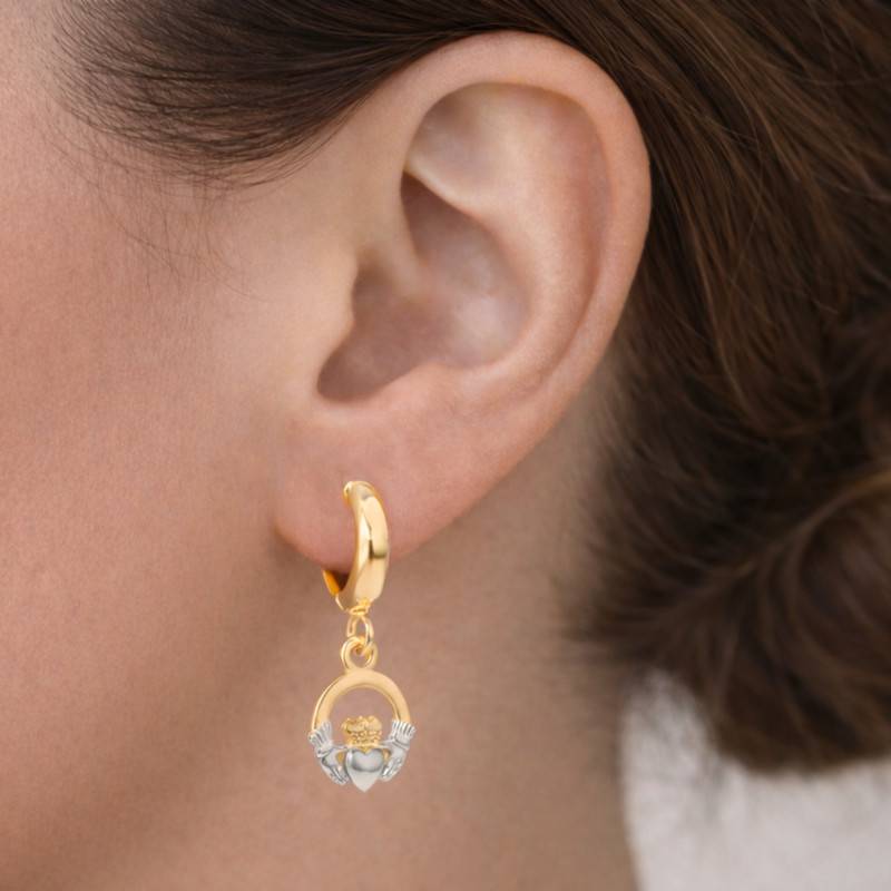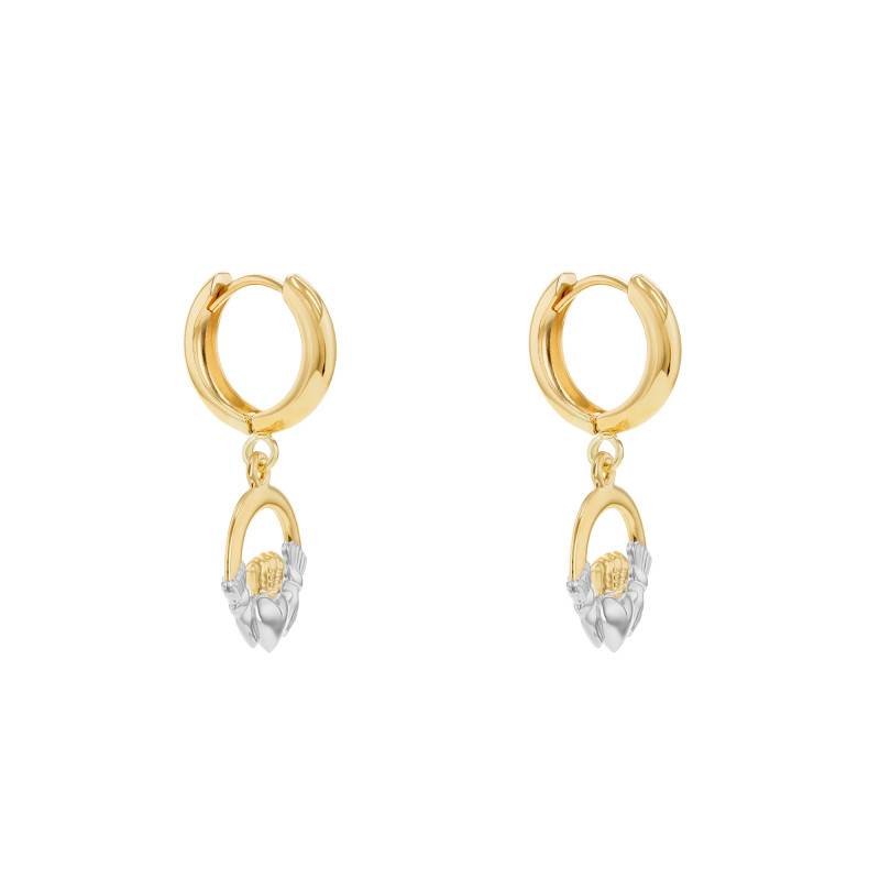 Les Boucles d'Oreilles Créoles Claddagh en 2 Ors 375 se dévoilent dans un jeu de lumière et de couleur, où le gris et le jaune dansent harmonieusement. Sculptées dans un alliage de 2 ors, mêlant Or Blanc et Or Jaune de qualité 375/1000 (9K), elles scintillent d'une finition polie et brillante. Ces créoles, au fermoir ingénieux à charnière avec cliquet de sécurité, enveloppent le lobe avec une délicatesse engageante. Elles mesurent 12,00 mm de largeur pour 27,00 mm de hauteur et pèsent 1,80 g. Avec une garantie de 2 ans, ces bijoux racontent l'histoire d'un amour éternel à travers le symbole du Claddagh.