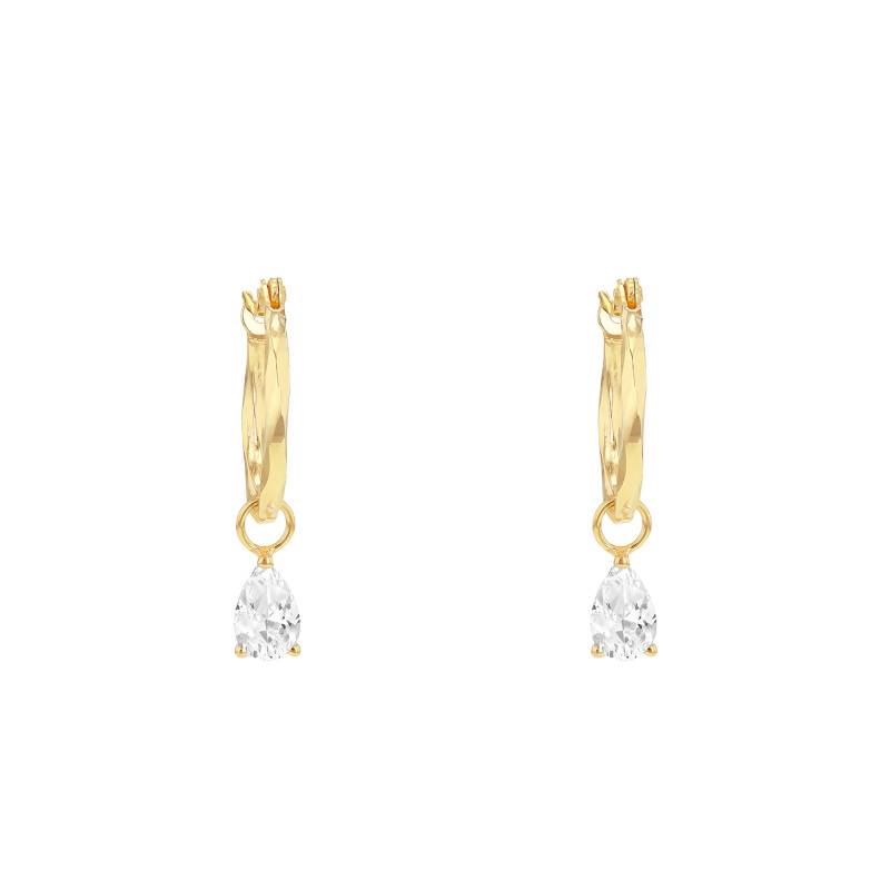 Découvrez la magie des Boucles d'Oreilles Créoles en Or Jaune 375 & Zircone en Poire. Sculptées dans un Or Jaune éclatant avec une pureté de 375/1000 (9K), ces créoles captivent par leur finesse et leur finition polie. Avec une largeur de 14 mm et une hauteur de 14 mm, elles se posent avec légèreté et originalité, pesant seulement 1,20 g. Leur zircone, délicatement posées en sertie à griffes, ajoutent une touche de lumière à chaque mouvement, tandis que le fermoir à cliquet assure une élégance sans faille.