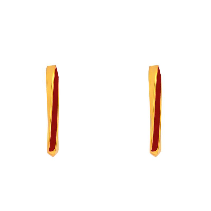 Ces Boucles d'Oreilles Créoles Tourbillonnantes en Argent Doré & Émail Rouge séduisent par leur silhouette graphique et moderne. Réalisées en argent doré, elles présentent une finition polie qui met en valeur l'éclat du métal. Leur design tourbillonnant est souligné par une courbe en émail rouge, apportant un contraste lumineux et structuré. Avec un diamètre de 14 mm et une largeur de 20 mm, elles offrent un équilibre harmonieux entre présence et finesse. Chaque boucle dispose d'une tige de 3 mm de longueur et mesure 19 mm de hauteur, et se ferme grâce à un fermoir poussette papillon, assurant un maintien confortable au quotidien.