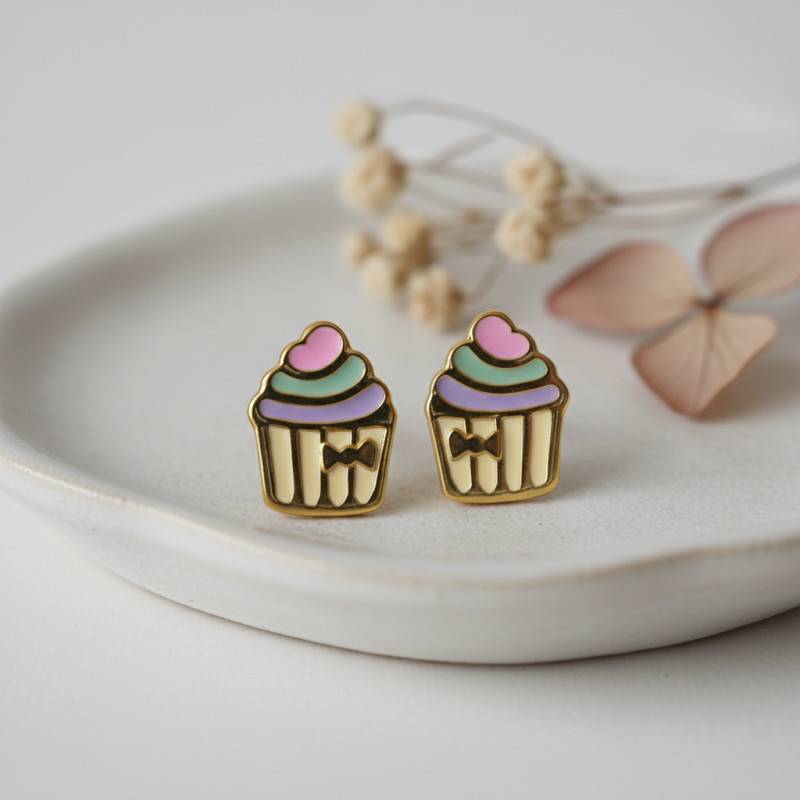 Magnifiez les oreilles de votre fille avec cette merveilleuse paire de boucles d'oreilles cupcakes. Réalisées à partir d'or jaune 375/1000 (9K), elles sont mises en avant par de l'émail de couleurs rose, verte et violette pour un effet plus enchanteur. Cette particularité lui confère la facilité à s'allier à toutes ses mignonnes tenues. Ces puces affichent de fines dimensions de 5,50 mm de largeur pour une hauteur de 7 mm. Dans le but de garantir non seulement de la sécurité et fixation plus durable, elles sont munies de fermoirs poussette papillon et disposent d'un poids total de 0,31 gramme.