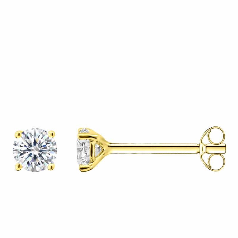 Laissez-vous séduire par ces sublimes boucles d'oreilles en or jaune, chacune ornée d'un diamant de synthèse cultivé en laboratoire, d'une pureté VVS2 et d'une couleur F. Chaque pierre affiche un poids de 0,40 carat par boucle d'oreille, révélant un éclat remarquable et une présence délicate à la fois. Le serti à griffes met en lumière la brillance du diamant, tandis que le fermoir poussettes papillon assure un maintien sûr et confortable au quotidien. Ces boucles d'oreilles sont proposées en deux titres d'or : 375/1000 (9K) ou 750/1000 (18K). Enfin, leur légèreté souligne leur finesse : 0,50 g en 9K et 0,70 g en 18K.