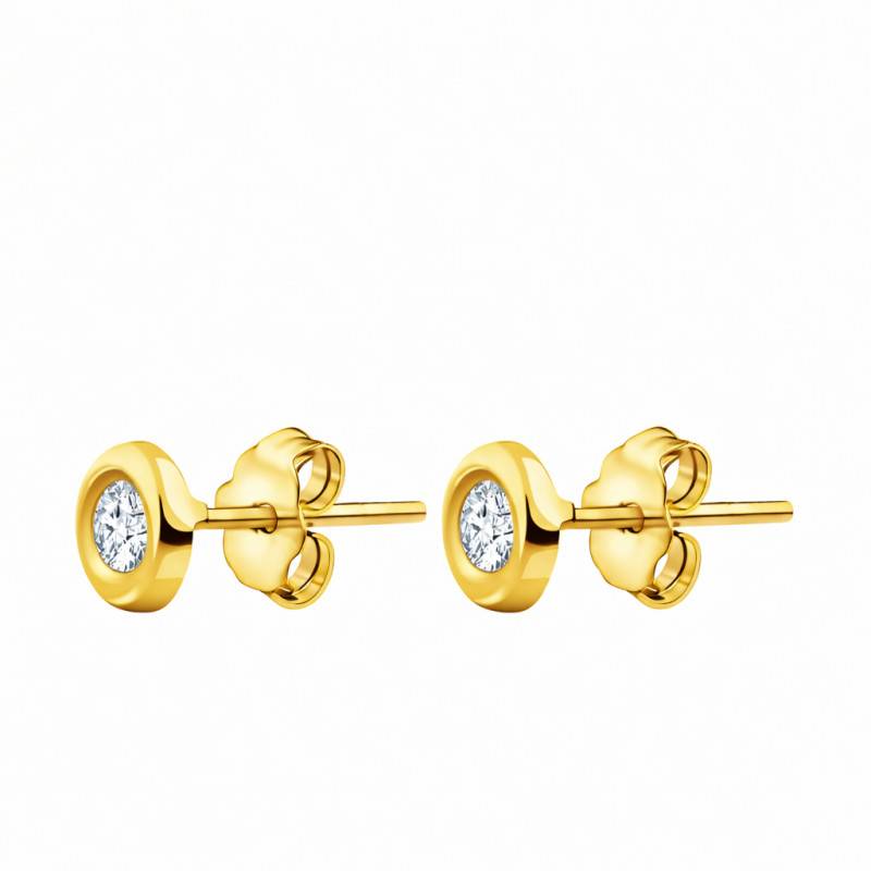 Les Boucles d'Oreilles Diamants de Synthèse Clos 2 x 0,15 ct en or jaune 375/1000 (9 carats) ou 750/1000 (18 carats) séduisent par leur élégance intemporelle. Chaque boucle est sertie d'un diamant de synthèse cultivé en laboratoire, présentant une couleur F et une pureté VVS2. Le serti clos met en valeur la pierre tout en assurant protection et modernité. Leur poids est de 0,71 g en 9K et de 0,90 g en 18K. Elles sont équipées de fermoirs poussettes papillon, garantissant un maintien sûr et confortable au quotidien.