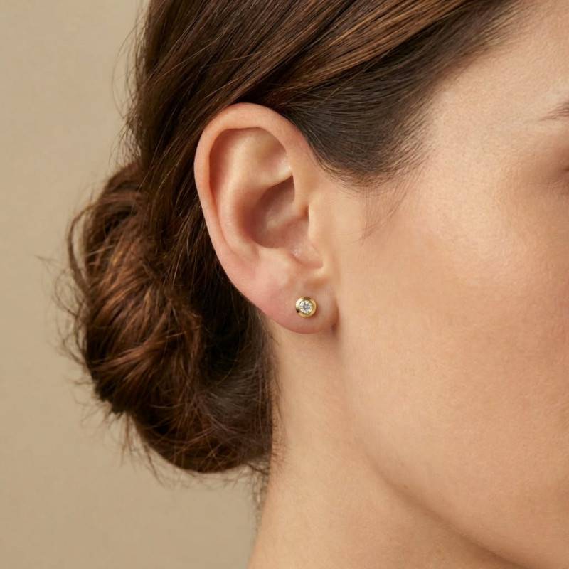 Boucles d'Oreilles Diamants de Synthèse Clos 2x0,15 ct en Or Jaune 375 ou 750