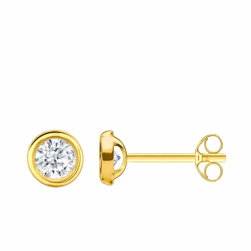 Les Boucles d'Oreilles Diamants de Synthèse Clos 2 x 0,20 ct en or jaune 375/1000 (9 carats) ou 750/1000 (18 carats) séduisent par leur élégance intemporelle. Chaque boucle est sertie d'un diamant de synthèse cultivé en laboratoire, présentant une couleur F et une pureté VVS2. Le serti clos met en valeur la pierre tout en assurant protection et modernité. Leur poids est de 0,71 g en 9K et de 0,90 g en 18K. Elles sont équipées de fermoirs poussettes papillon, garantissant un maintien sûr et confortable au quotidien.