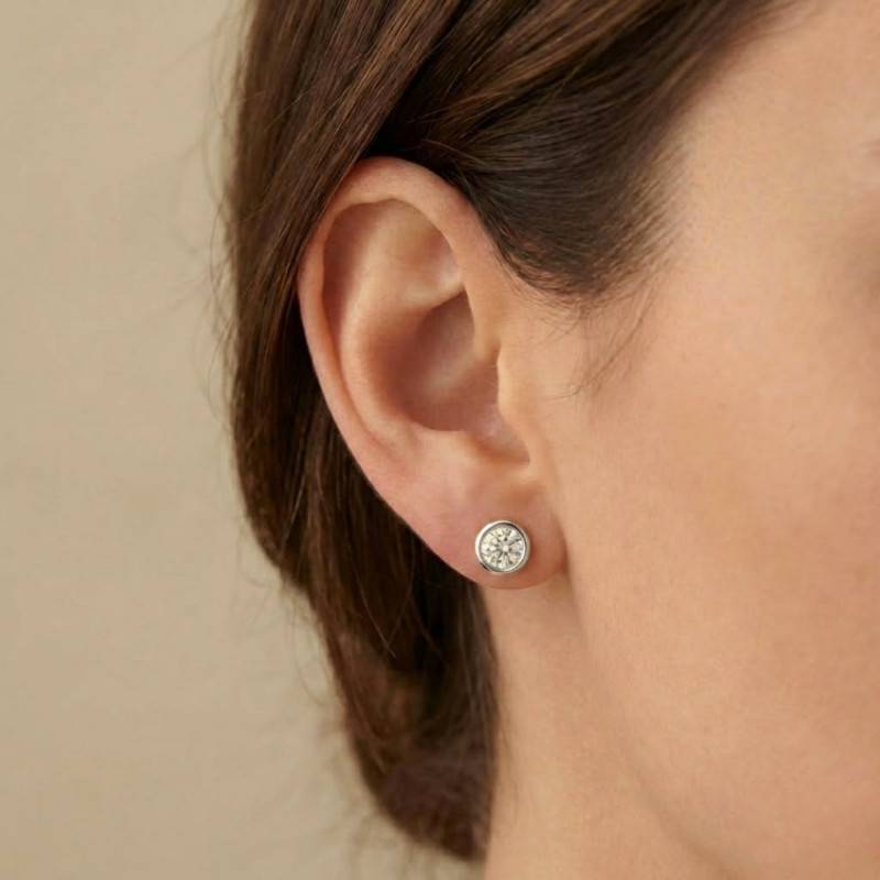 Les Boucles d'Oreilles Diamants de Synthèse Clos 2 x 0,25 ct en or blanc 375/1000 (9 carats) ou 750/1000 (18 carats) séduisent par leur élégance intemporelle. Chaque boucle est sertie d'un diamant de synthèse cultivé en laboratoire, présentant une couleur F et une pureté VVS2. Le serti clos met en valeur la pierre tout en assurant protection et modernité. Leur poids est de 0,72 g en 9K et de 1,00 g en 18K. Elles sont équipées de fermoirs poussettes papillon, garantissant un maintien sûr et confortable au quotidien.