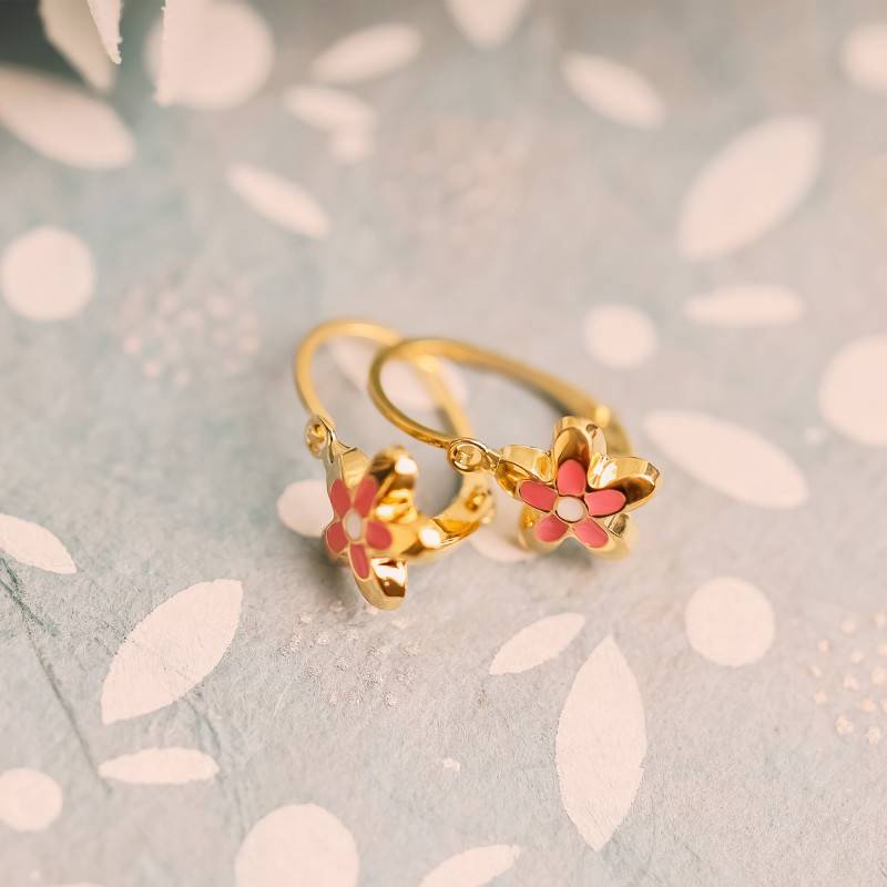 Ces Boucles d'Oreilles Dormeuses en forme de Fleur rose sont façonnées en Or Jaune 750/1000 (18K). La lueur pétillante de leur finition polie et brillante éclaire délicatement l'univers enfantin, offrant un éclat qui touche le cœur. Le poids plume de 0,72 grammes promet légèreté et confort, tandis que les teintes douces de l'or jaune et du rose s'harmonisent pour évoquer des rêves en fleurs. D'une hauteur de 13 mm, elles sont dotées d'un fermoir brisure, assurant sécurité et confort au quotidien.