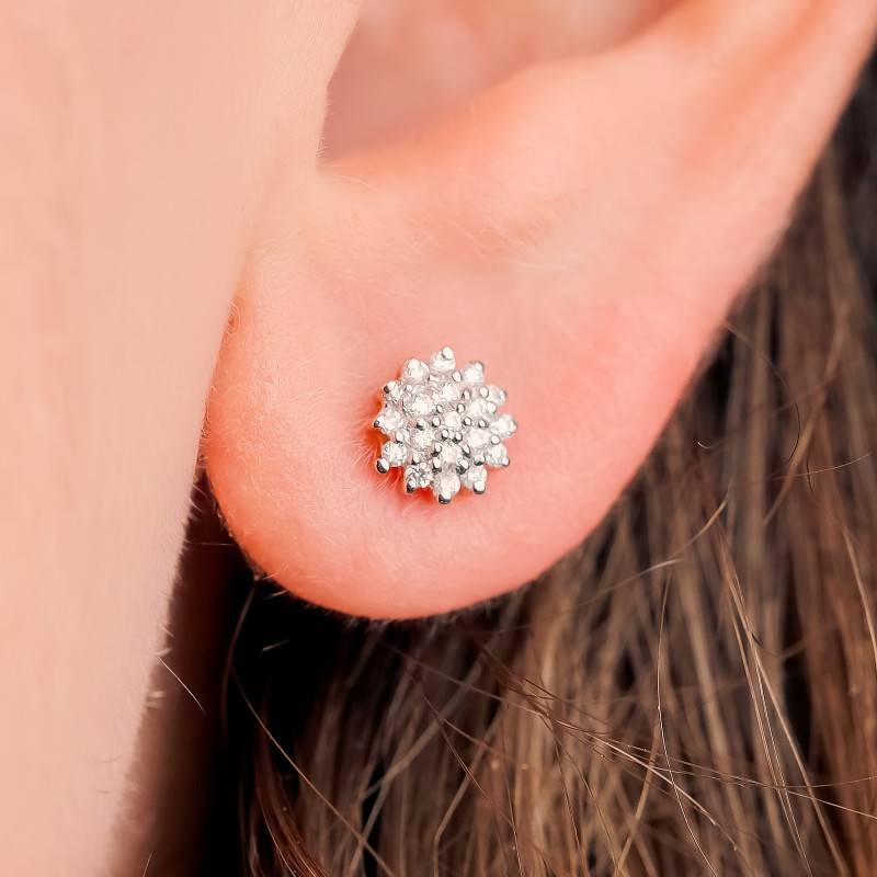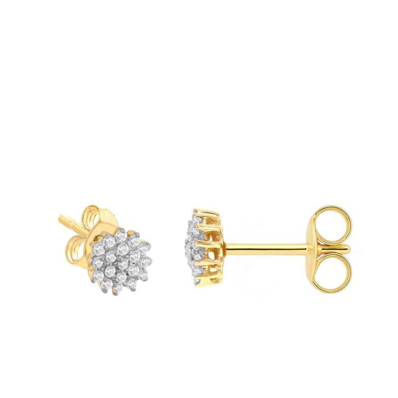 Laissez-vous séduire par ces Boucles d'Oreilles en Argent 925 Plaqué Or Jaune, bijoux lumineux ornées de 38 Diamants de Synthèse totalisant 0,17 ct. Ces puces scintillantes, d'un diamètre de 6 mm, sont le reflet parfait d'une élégance subtile et intemporelle. L'argent exquis, rehaussé d'une couche dorée, rayonne de mille feux grâce à sa finition polie et brillante. Le sertissage à grains et à griffes magnifie l'éclat pur des diamants, révélant toute la splendeur d'un design raffiné. Chaque pièce, pesant 1,10 g, incarne la perfection et la délicatesse d'un artisanat finement exécuté.