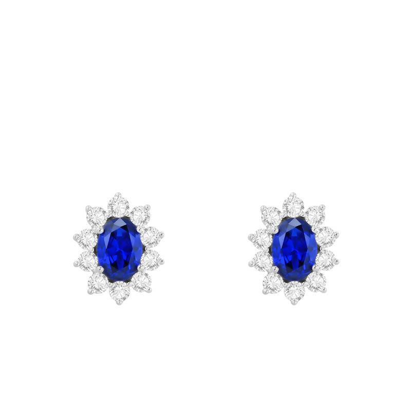 Découvrez la majesté de ces Boucles d'Oreilles en Or Blanc 375. Avec une finition polie et brillante, ces bijoux mettent en valeur un éclat sans égal. Au cœur de ces merveilles, un saphir de synthèse ovale de couleur bleu est délicatement enlacé par un serti à griffes de oxydes de zirconium étincelants. La largeur de 10 mm et la hauteur de 12 mm, combinées à un poids total de 1,90 g, confèrent à ces boucles une présence légère mais imposante sur l'oreille.
