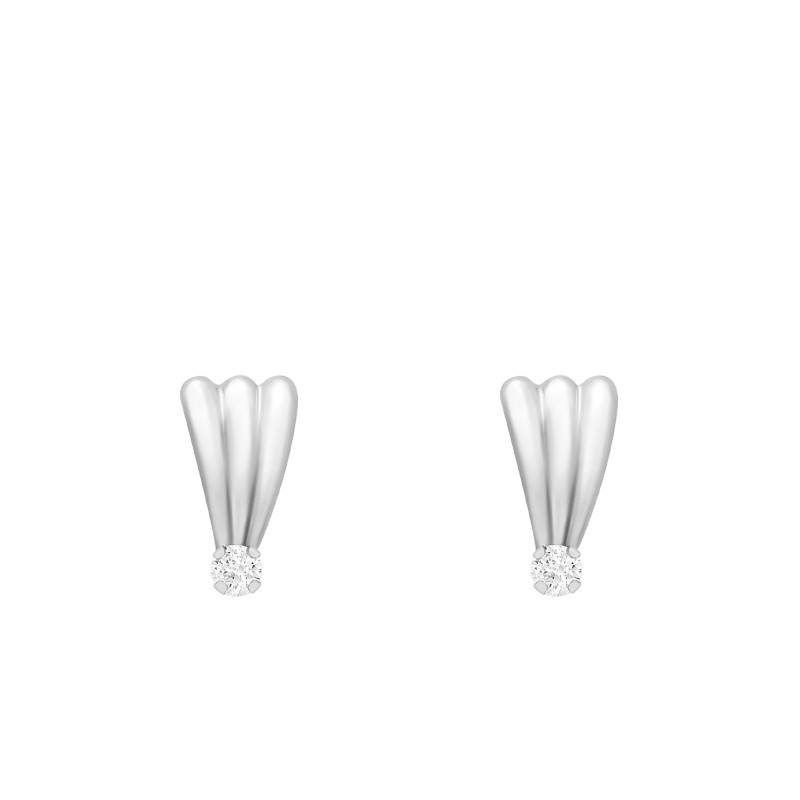 Ces boucles d'oreilles sont conçues en or blanc 375/1000 (18K) et ont la forme d'éventail. Chaque boucle est ornée d'un magnifique oxyde de zirconium qui scintille. Cette somptueuse pierre de 3 mm est sertie à 4 griffes et déploie des reflets irradiants. Ces sublimes boucles d'oreilles polies disposent d'une largeur de 7 mm, d'une hauteur de 13 mm. Notez qu'elles sont dotées d'une poussette papillon pour une manipulation plus facile.