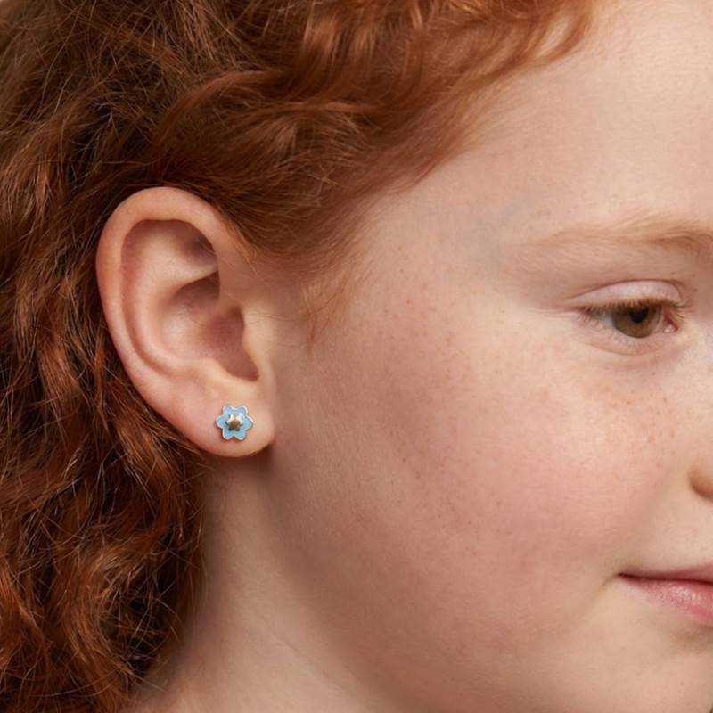 La marque s'inspire de la fleur de lin pour cette merveilleuse création ! Ces puces d'oreilles sont en forme de fleur bleue composée au centre d'une fleur dorée. L'alternance des couleurs dorée et bleue rendent cette fleur unique. En or jaune 375/1000 (9K) ou 750/1000 (18K), ce bijou affiche des dimensions idéales de 5 x 5 mm. La version 375/1000 (9K) affiche un poids d'or moyen de 0,40 gramme tandis que la version 750/1000 (18K) affiche un poids d'or moyen de 0,53 gramme. Le fermoir à vis garantira à l'enfant une sécurité au porté.