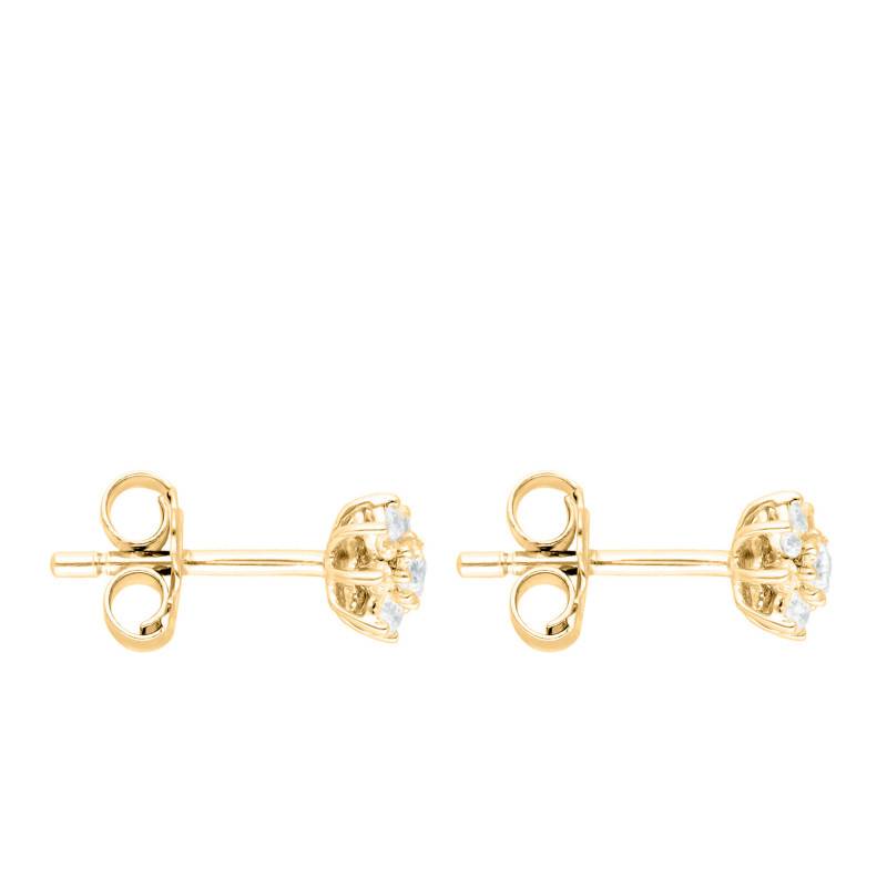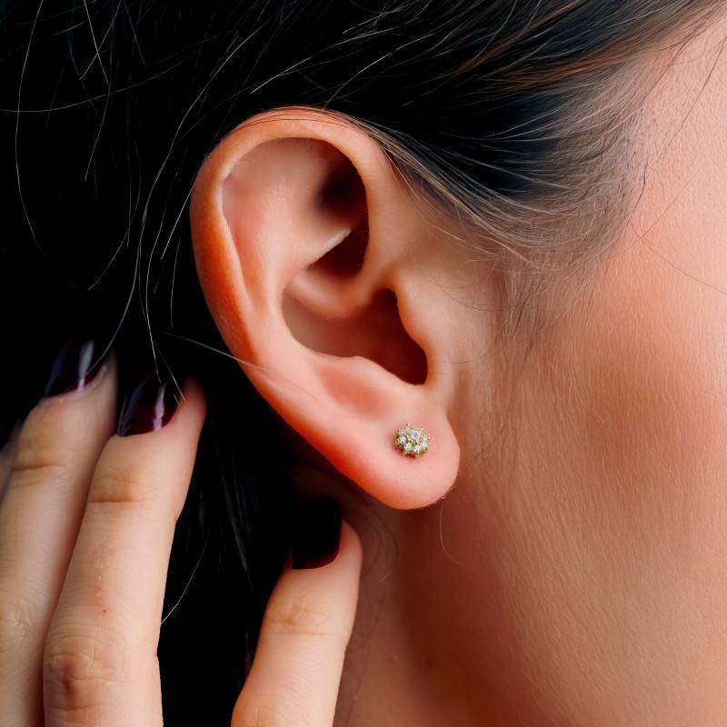 Ces Boucles d'Oreilles Fleurs en Diamants 0,24ct, Or Blanc 375 incarnent un hymne à la nature et à la beauté. Forgées en Or Jaune, elles se parent de l'éclat chaleureux d'un 375/1000 en carats. Les diamants blancs, totalisant 0,24 carats, scintillent comme la rosée du matin, rehaussant la pureté de leurs 18 pierres. Avec leur épaisseur de 0,90 mm et un diamètre de 4,00 mm, elles sont sécurisées par des poussettes papillon. Leur poids léger de 0,90 g assure un confort optimal, faisant d'elles un compagnon discret et raffiné.
