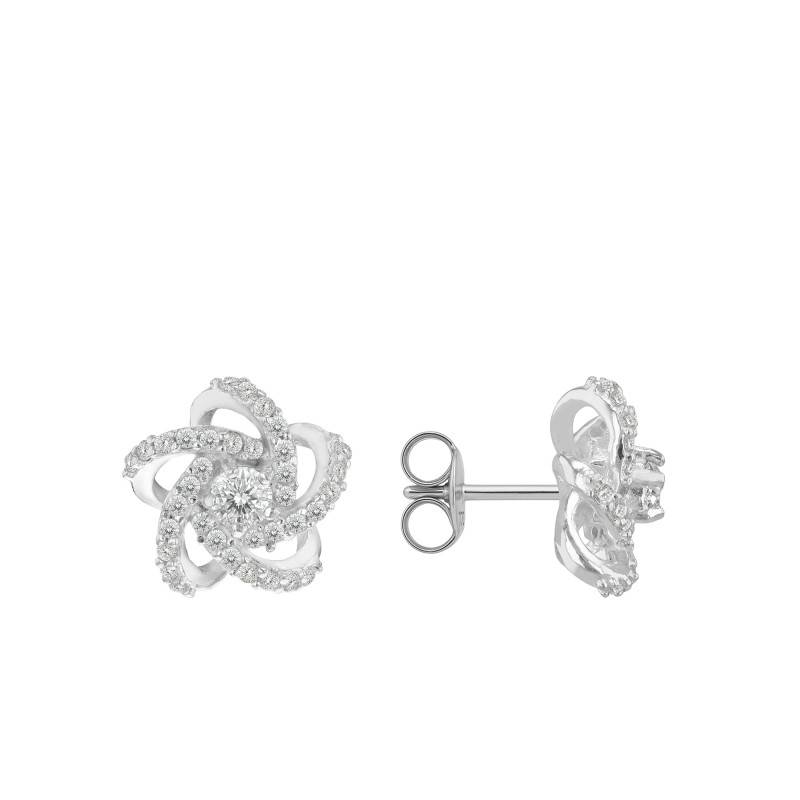 Ces délicates Boucles d'Oreilles Fleurs Entremêlées en Argent 925 & Oxydes de Zirconium capturent l'essence même de la finesse florale. Avec une hauteur de 12 mm, chaque boucle rayonne par la splendeur de ses 72 pierres en oxyde de zirconium blanc, magnifiquement enchâssées dans un écrin d'argent massif 925/1000. Le parfum envoûtant de l'argent poli et brillant caressera votre peau avec tendresse, tout en garantissant une broderie scintillante d'une assurance de 2 ans. Leur poids léger de 2,40 g permet un port gracieux qui se fond dans chaque moment précieux.