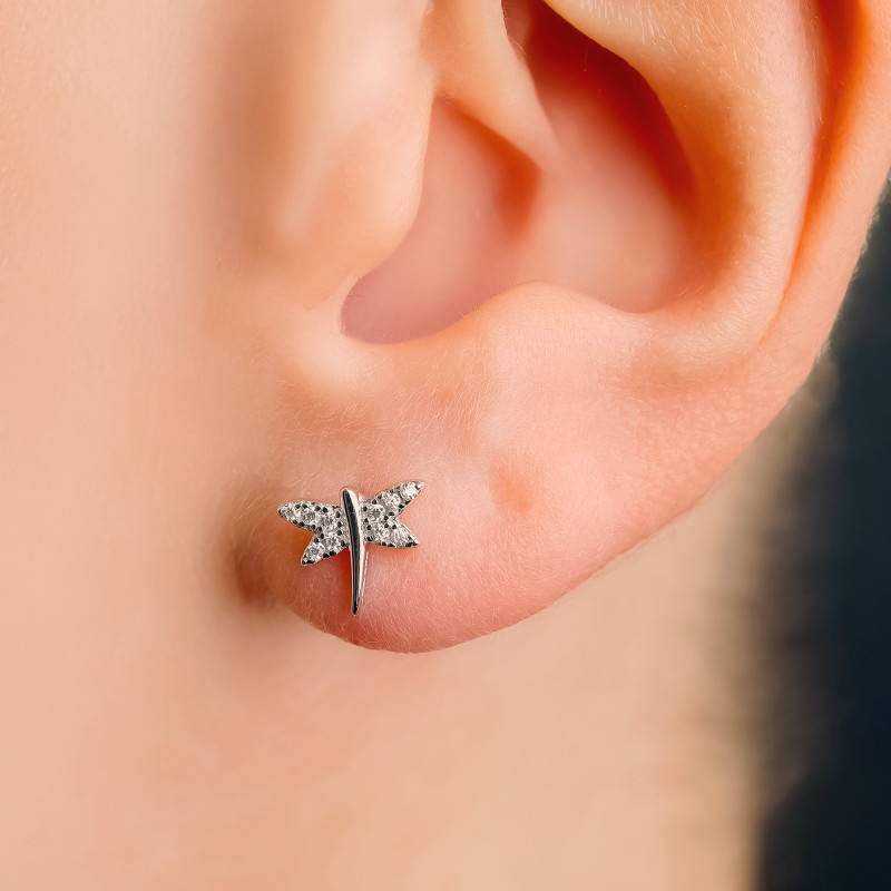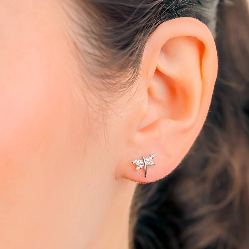 Voici les Boucles d'Oreilles Libellule en Argent & Oxydes de Zirconium, une ode à la délicatesse des créatures ailées qui dansent au-dessus des eaux tranquilles. Ces boucles d'oreilles pour femme captivent par leur éclat cristallin offert par l'Oxyde de zirconium, niché dans un écrin d'argent massif 925/1000. Le design en argent brillant raconte un poème de lumière et de raffinement, sublimé par une finiton polie et brillante. Pesant à peine 0,60 g, chaque puce se pose sur vos lobes comme une caresse.