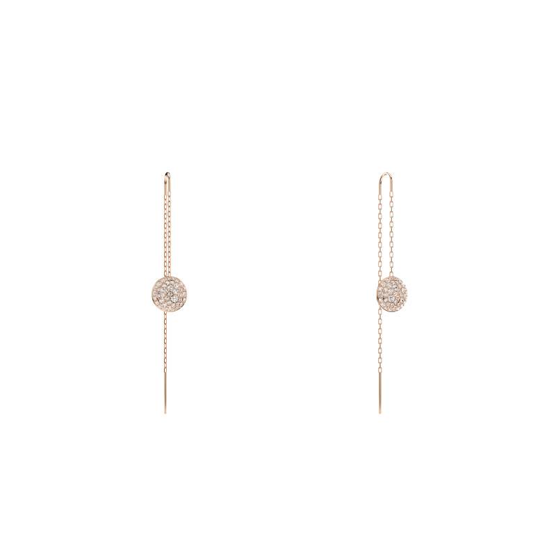 Soyez élégante et resplendissante de jour comme de nuit avec cette jolie paire de boucles d'oreilles de la collection Meteora, un bijou intemporel qui vous permettra de rehausser au quotidien votre style charmant. Celles-ci arborent un design moderne et une esthétique délicate afin de s'accorder avec n'importe laquelle de vos tenues. Ces pendantes d'oreilles sont fabriquées en métal poli et se parent d'une sublime couleur rose dorée qui leur accordent un aspect plus féminin. Chaque boucle dispose d'une chaîne en maille forçat qui passera sur vos oreilles grâce à une barre positionnée au bout. Elle porte de l'autre bout un motif rond mesurant 1 cm de diamètre qui est agrémenté de cristaux blancs et ronds. Brillant de mille feux, ces pierres de taille différentes accordent à l'ensemble une touche de subtilité radieuse. Ces boucles d'oreilles affichent une longueur de 6,80 cm et elles se maintiendront attachées à vos oreilles grâce à la barre inclinée qui sépare leur chaîne.