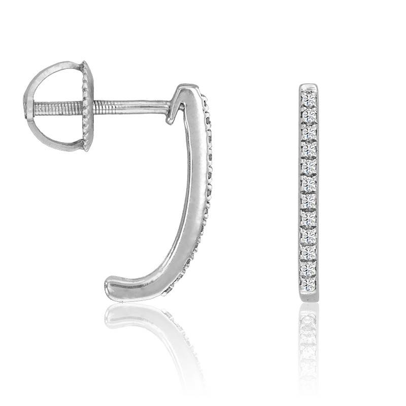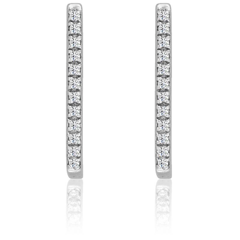 Kundan vous propose ces adorables boucles d'oreilles or blanc rhodié 750/1000 (18K) composées d'une barrette incurvée pavée de 12 diamants sertis à grains pour chacune des boucles. Discret et chic, ce bijou vous sublimera nuit et jour, à chaque évènement de la vie !