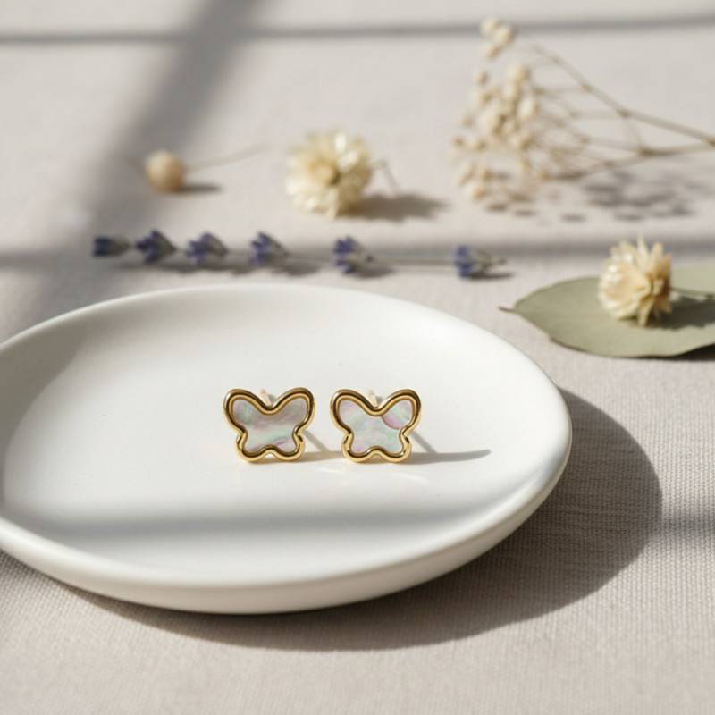 Succombez au charme de ces puces d'oreilles en forme de papillon, elles transporteront les enfants sous un ciel ensoleillé! Ces papillons de couleur blanche sont en nacre, ce qui leur donne un côté raffiné et plus de grandeur. La longueur de ces petites merveilles est de 5 mm et la largeur est de 4 mm, ce bijou épousera parfaitement le lobe votre enfant. Ces petites puces sont disponibles dans la version 375/1000 (9K) et la version 750/1000 (18K) ! Le fermoir à vis garantira une sécurité et un confort au porté.