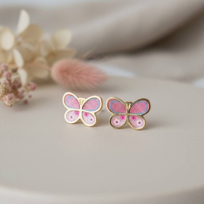 Ces boucles d'oreilles se ferment via un fermoir poussettes papillon et garantiront sécurité et confort à l'enfant qui les porte.