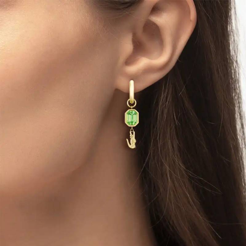 Sublimez votre allure avec les Boucles d'Oreilles Pendantes Deva en Acier Doré & Cristal Vert. Confectionnées en acier inoxydable, ces boucles d'oreilles révèlent une finition polie et brillante, leur conférant une lumière éclatante à chaque mouvement. Leurs pendants ornés de cristaux verts captivent par leur charme envoûtant, tandis que le fermoir à cliquet assure un port confortable et sécurisé. Conçues pour sublimer la silhouette féminine, ces boucles d'oreilles se distinguent par un design raffiné et une légèreté idéale avec un poids total de 5,10 g.