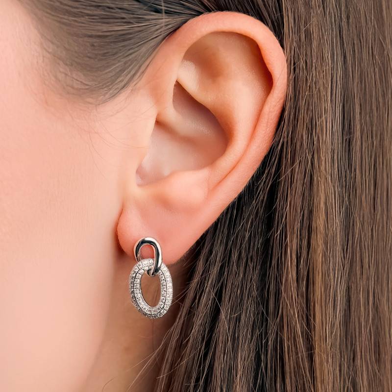 Ces Boucles d'Oreilles Pendantes en Argent 925 & Oxyde de Zirconium captivent par leur beauté étincelante. Confectionnées en argent massif 925/1000, elles revêtent une finition polie et brillante qui sublime chaque mouvement de lumière. Leurs courbes délicates sont parées d'oxydes de zirconium blancs, scintillant tels des étoiles capturées dans un ciel argenté. Dotées de poussettes papillon, elles se portent avec la légèreté d'une brise, ne pesant que 3 g. Ces boucles d'oreilles pendantes promettent une harmonie parfaite entre élégance et confort.