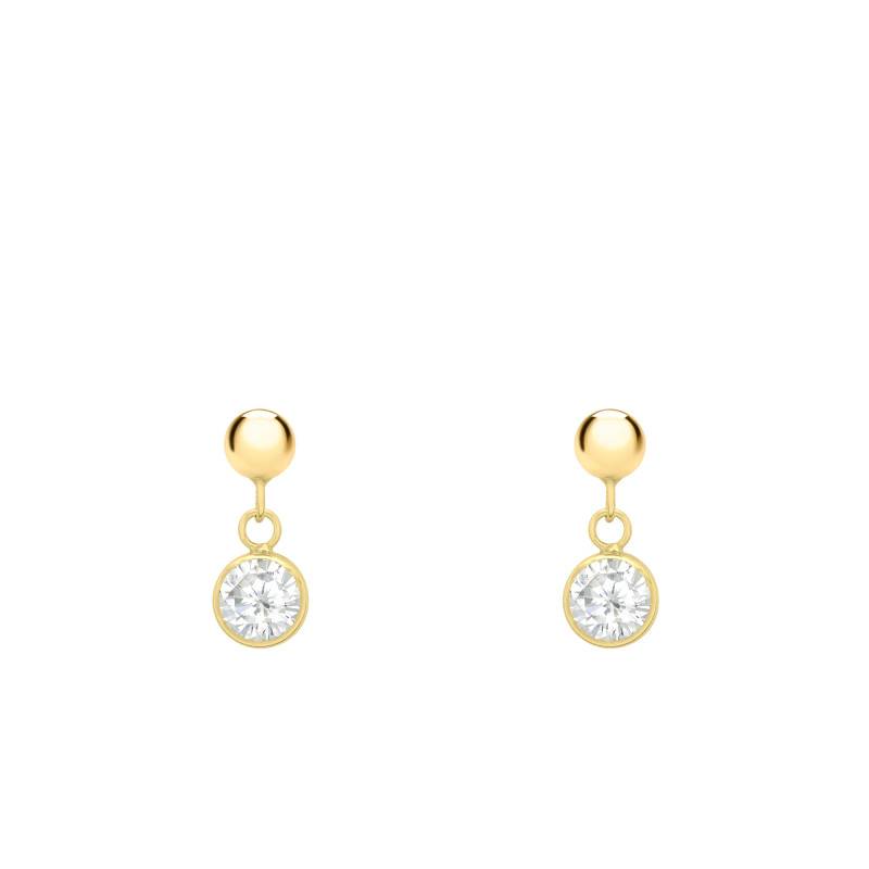 Le charme fantaisiste de cette paire de boucles d'oreilles saura vous démarquer. Leur fabrication en or jaune 375/1000 (9K) leur octroie un ton doré mis en valeur par une finition polie. D'un aspect brillant, elles se composent de montures circulaires qui se suspendent par le biais de deux anneaux. Ces derniers sont sertis d'oxydes de zirconium blancs de forme ronde qui affichent chacun un diamètre de 5 mm et attribuant au bijou un attrait plus charmant. Cette paire de boucles d'oreilles pendantes rehaussera votre apparence avec prestance. Notez qu'elles disposent d'une largeur de 5,50 mm et d'une hauteur de 13 mm.