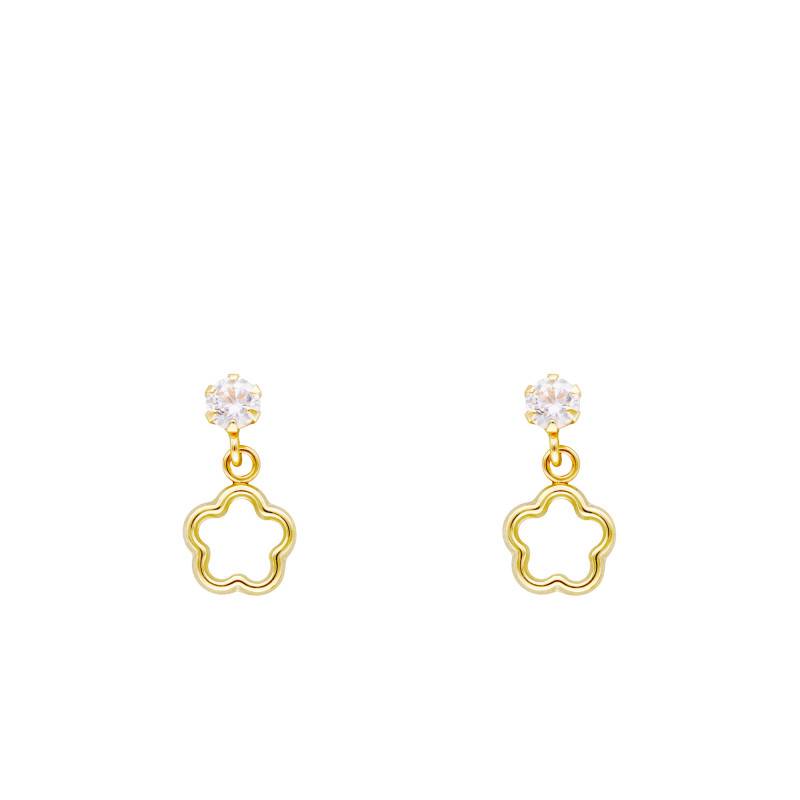 Laissez-vous séduire par ces Boucles d'Oreilles Fleurs Pendantes en Or Jaune 375 & Oxyde de Zirconium, éclatantes de charme et de simplicité. Conçues pour égayer les petites oreilles, elles s'habillent de fleurs délicates en Or Jaune 375/1000, rehaussées par l'éclat d'un Oxyde de Zirconium étincelant. Leur finition polie et brillante magnifie la lumière, offrant un éclat radieux à celles qui les portent. Avec un poids de 0,33 g, elles sauront se faire discrètes tout en affirmant une douce présence.
