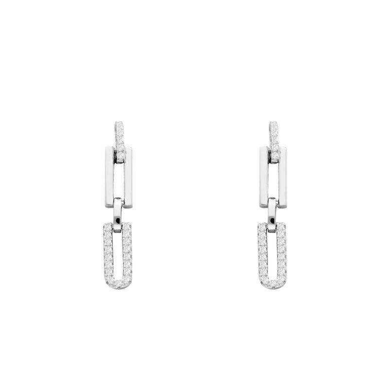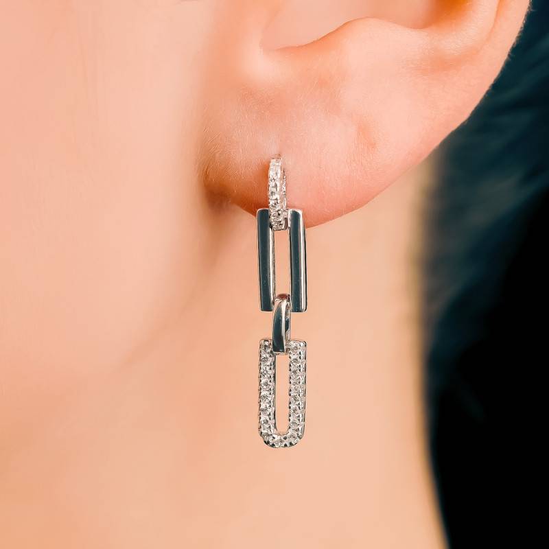Explorez la délicatesse des Boucles d'Oreilles Pendantes Maillons en Argent & Oxydes de Zirconium. Ces bijoux enchanteurs, baignés de lumière, jouent joyeusement entre les reflets de l'argent massif 925/1000 et l'éclat des oxydes de zirconium. La finiture polie de cet accessoire lui confère une brillance captivante, comme une caresse de lumière sur une étoffe précieuse. Chaque boucle, pesant 3,45 g, danse avec légèreté à chaque mouvement, illuminant le visage de l'heureuse élue. Laissez-vous charmer par leur beauté raffinée et leur design sophistiqué. Garantie de 2 ans, ces trésors sont conçus pour durer.