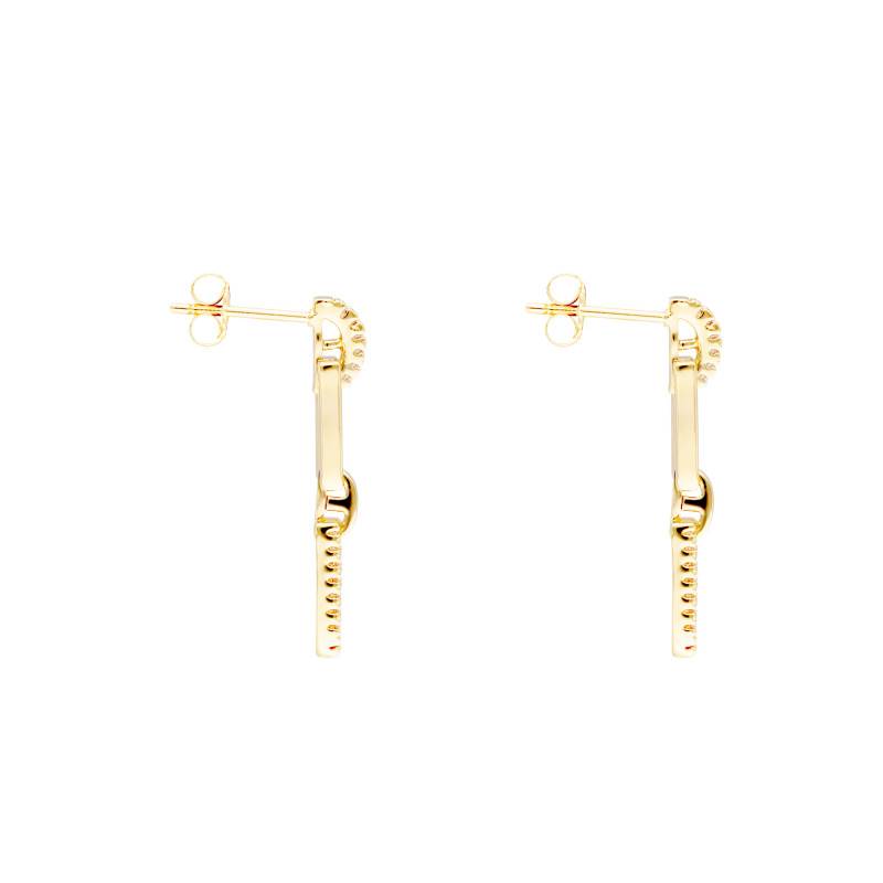 Ces boucles d'oreilles pendantes Sully sont des symphonies de lumière et d'éclat, sculptées dans un Plaqué Or de haute qualité, d'une épaisseur de 3 microns. Leur teinte jaune rappelle les premiers rayons du soleil, capturés pour briller sans relâche. Les oxydes de zirconium subtils, dansent à chaque mouvement, révélant leur splendeur cachée. Polies pour un éclat incomparable, ces boucles d'oreilles de 20,00 mm de longueur, avec leur système de fermoir poussettes papillon, murmurent la promesse d'une élégance éternelle.