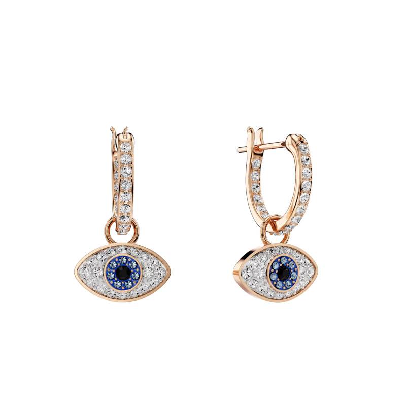 Laissez-vous séduire par les Boucles d'Oreilles Pendantes Symbolica Oeil Dorées Roses, une symphonie de couleurs et de lumière. Ces boucles d'oreilles captivent l'œil avec des nuances de blanc, bleu, noir, et rose. Fabriquées en métaux divers avec un plaqué doré rose, elles scintillent de mille feux grâce à leur finition polie et brillante. À travers leur design énigmatique de l'œil, ces bijoux, ornés de cristaux de Swarovski, mesurent 11 mm de largeur et pèsent 1,50 g chacuns. Les cristaux viennent renforcer l'élégance avec des teintes de blanc, bleu, et noir.