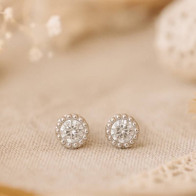 Ces sublimes Boucles d'Oreilles Puces Perlées en Argent 925 & Zircons sont une ode à la féminité intemporelle. En argent massif 925/1000, leur éclat poli et brillant capte la lumière à chaque mouvement. D'un gris argenté et ornées d'un oxyde de zirconium d'une blancheur éclatante, avec un diamètre de 6 mm et une épaisseur de 3,05 mm, ces puces sont légères avec un poids de 1,18 g qui se ferment avec un fermoir à poussettes papillon.