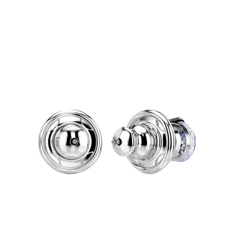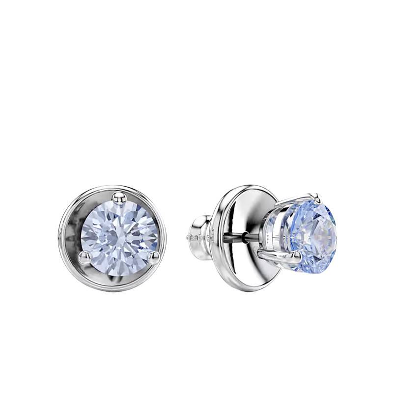 Ces magnifiques boucles d'oreilles émanent de la collection Solitaire. Elles sont faites en métal rhodié et poli ce qui garantit une touche brillante et une résistance à l'usure. Avec leur éclat saisissant, ces puces d'oreilles vous accorderont un port agréable et se marieront naturellement avec vos différents looks. Elles affichent 7 mm de hauteur et de largeur. Chacune d'elles arbore une monture grise avec trois griffes qui maintiennent un resplendissant cristal bleu et rond fabriqué par la maison. Grâce à des fermoirs à vis, vous pourrez facilement manipuler ces boucles d'oreilles.