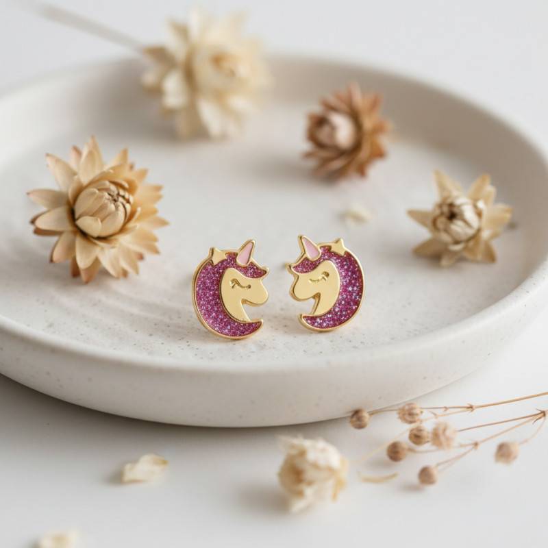 Laissez-vous tenter par ces merveilleuses boucles d'oreilles en or jaune 750/1000 (18K). Pour le plus grand bonheur des petites filles, elles prennent la forme d'une tête de licorne recouverte de paillettes roses. La paire de boucles d'oreilles affiche des dimensions de 5 x 7 mm pour un poids moyen de 0,69 g. Afin de bénéficier d'un maintien solide, les boucles d'oreilles disposent d'un fermoir à vis.