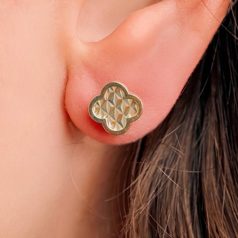 Découvrez les Boucles d'Oreilles Trèfle Scintillant en Or Jaune 375, une véritable ode à la féminité. Sculptées avec soin dans un Or Jaune de qualité supérieure (375/1000), elles illuminent de leur éclat polie et brillante votre style. Leur design en forme de trèfle mesure 9,20 mm de hauteur et de largeur, incarnant la perfection dans chaque détail. Avec un poids délicat de 1,30 g, ces puces exquises offrent une légèreté parfaite pour toutes les occasions. Elles bénéficient d'une garantie de 2 ans, gage de qualité et de confiance.