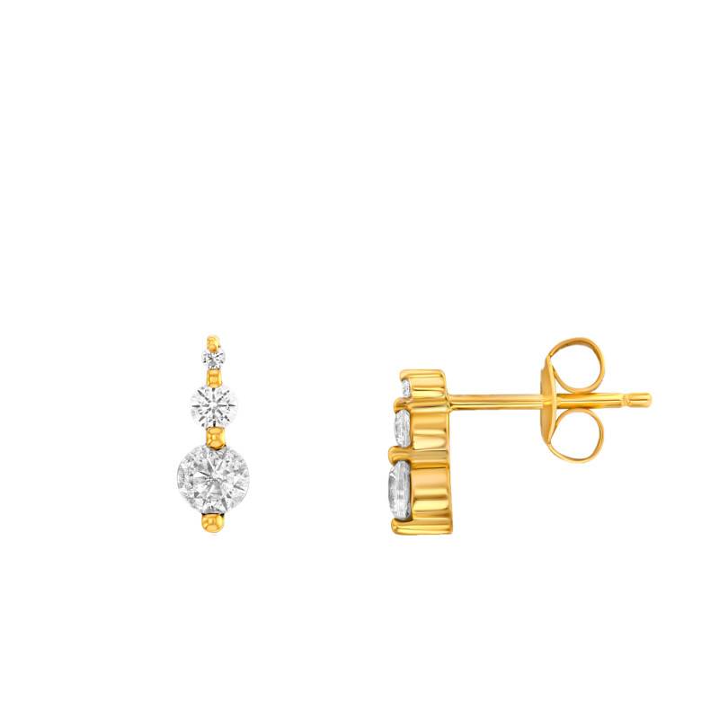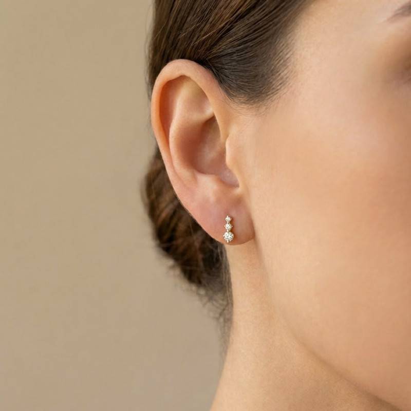 Découvrez les Boucles d'Oreilles Trilogy en or jaune 375/1000 (9 carats), un modèle raffiné qui accompagnera aussi bien vos tenues de journée que vos looks de soirée. Chaque boucle mesure 8 mm de hauteur pour 3 mm de largeur et se compose de trois oxydes de zirconium de tailles différentes, créant un jeu de lumière délicat et harmonieux. Leur éclat brillant met subtilement en valeur le lobe, tandis que le fermoir poussette papillon assure un maintien sûr et pratique au quotidien.