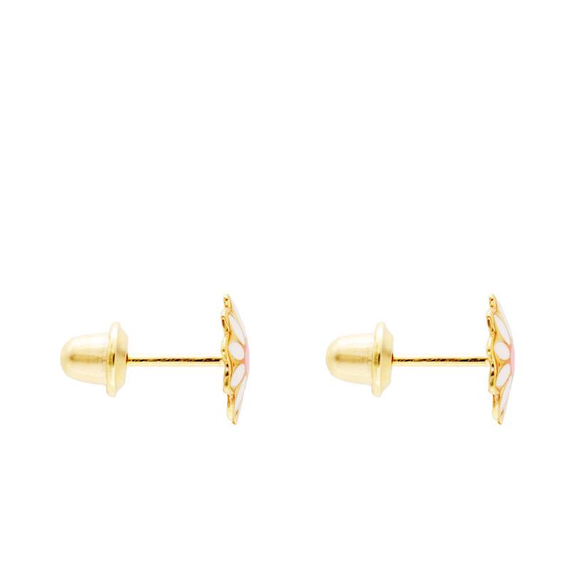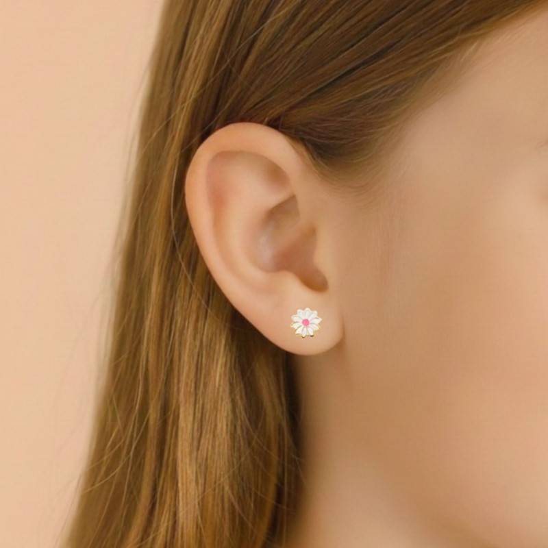 Les Boucles d'Oreilles Marguerite Blanche en Or Jaune 375 & Émail sont un éclat de douceur à l'image des prairies du printemps, parées de blanches pétales rehaussées d'un cœur rose en émail. Forgées en Or Jaune 375 d'une pureté incomparable, elles possèdent une finition polie et brillante pour capturer la lumière comme un rayon de soleil matinal. Avec un poids total de 0,37 g, ces puces délicates s'adressent à l'innocence et à la grâce enfantine, assurées par une garantie de 2 ans. Gravure possible pour ajouter une touche personnelle à ces trésors.