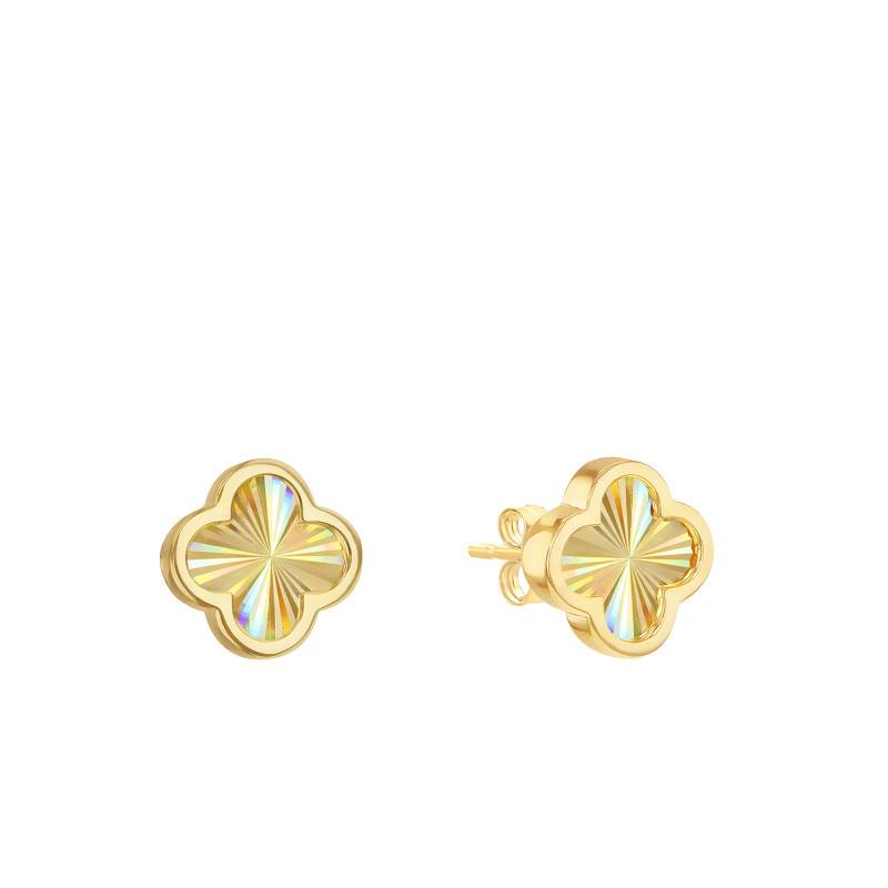 Ces sublimes boucles d'oreilles trèfles sont un véritable bijou de subtilité et d'élégance. Leur surface arc-en-ciel reflète une lumière chatoyante, apportant une touche de couleur lumineuse à l'ensemble. Conçues en or jaune 375/1000 (9K), ces puces d'oreilles en forme de trèfle présentent une teinte dorée chaleureuse, soulignant leur raffinement. La finition brillante accentue leur éclat pour un rendu impeccable. Avec 9 mm de largeur et 9 mm de hauteur pour un poids total de 1,30 gramme, ces boucles d'oreilles sont à la fois délicates et tendances, ajoutant une touche moderne à votre style.