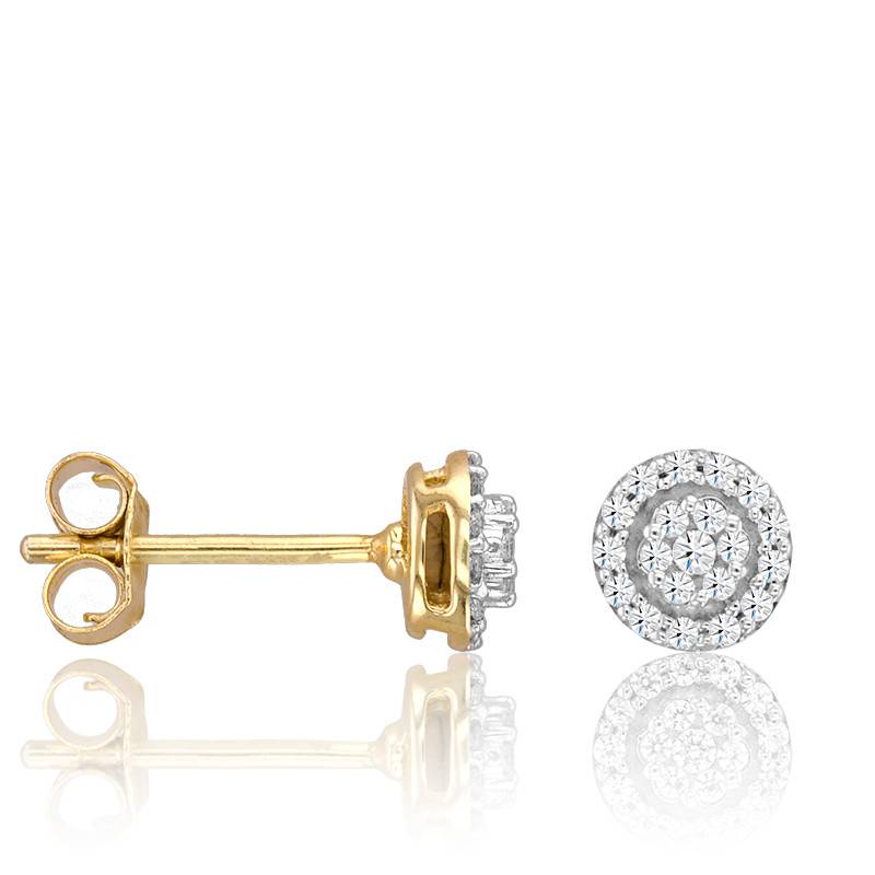 Élégantes et raffinées, ces puces d'oreilles or jaune 750/1000 (18K) apporteront une touche d'éclat à vos tenues. Sertis à grains, les 40 diamants taille brillant ont un poids total de 0,23 carat. Ils encerclent un diamant central de 0,07 carat. Les scintillants diamants sont de couleur H et de pureté P1. Chacune des puces d'oreilles a un diamètre de 6.30 mm. Elles sont proposées avec un fermoir poussette papillon. Le poids d'or moyen pour la paire de boucles d'oreilles or est de 1,33 gramme.