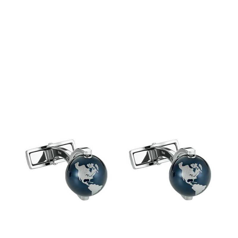 Ces sublimes boutons de manchette vous sont proposés par la maison Montblanc. Appartenant à la collection « Heritage Spirit », les globes rotatifs représentent le désir d'explorer le monde. Les globes sont en acier inoxydable, incrustés de perles en aluminium. On retrouve sur ces globes l'océan qui a une finition bleue anodisée. Ils ont comme diamètre 12,30 mm et s'attachent à l'aide d'un fermoir déployant. Ce bijou est une véritable invitation au voyage !