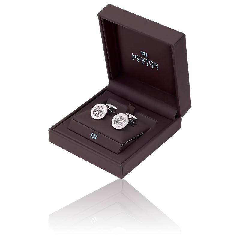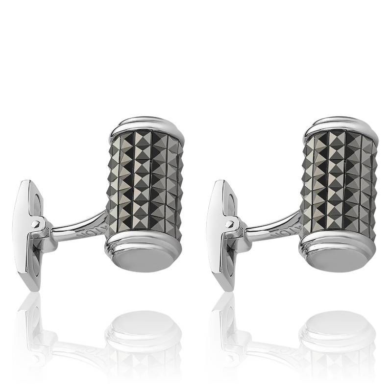 Elégants et modernes, ces boutons de manchette en argent massif rhodié sont de forme cylindrique. Le corps des boutons de manchette est recouvert de pyramidion en marcassite qui donne un effet mordoré chic.