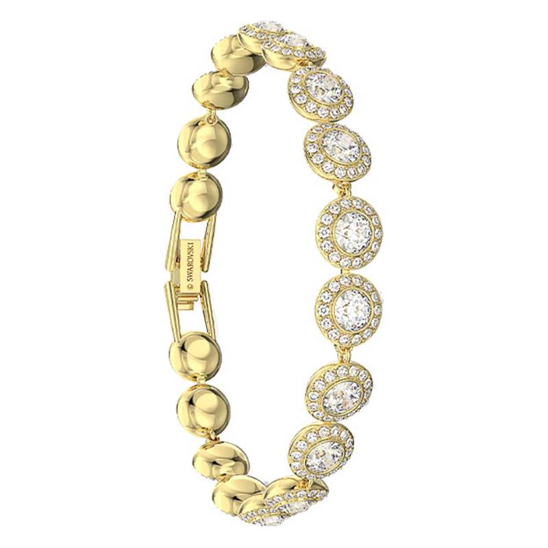Découvrez ainsi le bracelet 5505469 provenant de la collection Angélic. Raffiné et élégant, cet ornement de 16,5 cm embrassera délicatement votre poignet. Très charmant, il se compose d'une rangée de cristaux ronds, chacun pavé de plusieurs petites pierres lui donnant un merveilleux éclat. Minutieusement doré, ce tour de poignet au style intemporel se manipule à l'aide d'un fermoir clipable signé par la marque.