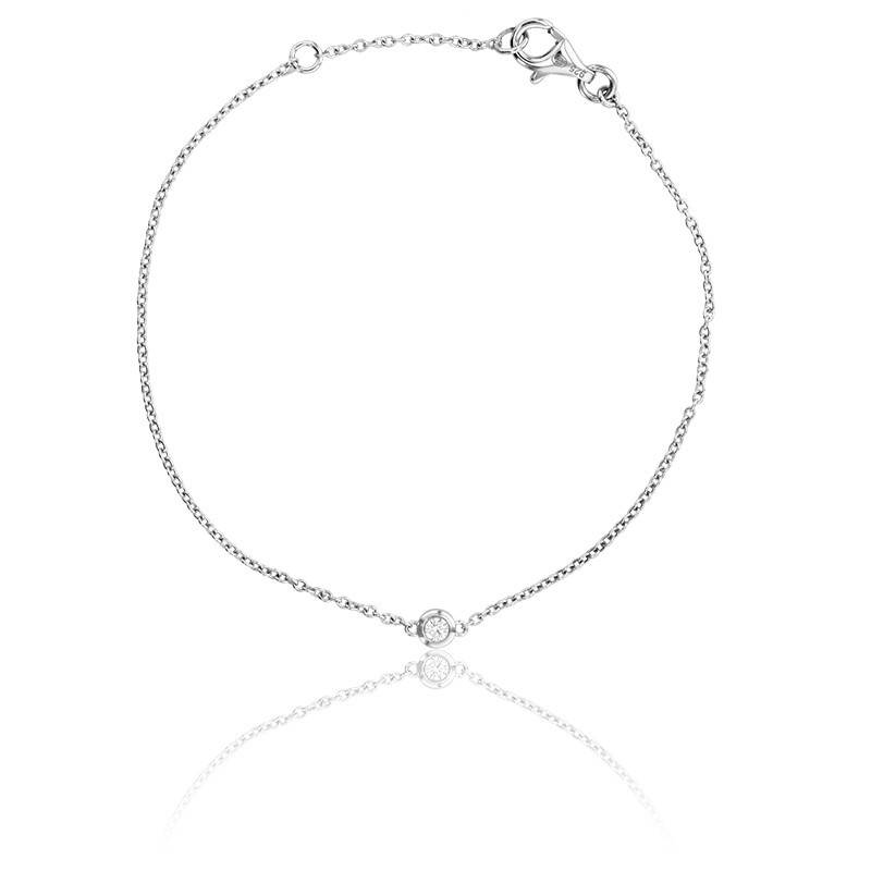 Elégant et épuré, ce bracelet en or blanc 750/1000 (18K) apportera une touche d'éclat à vos tenues. Le diamant de 0,05 carat serti clos et de qualité GSI2, fait 2,40 mm de diamètre.
