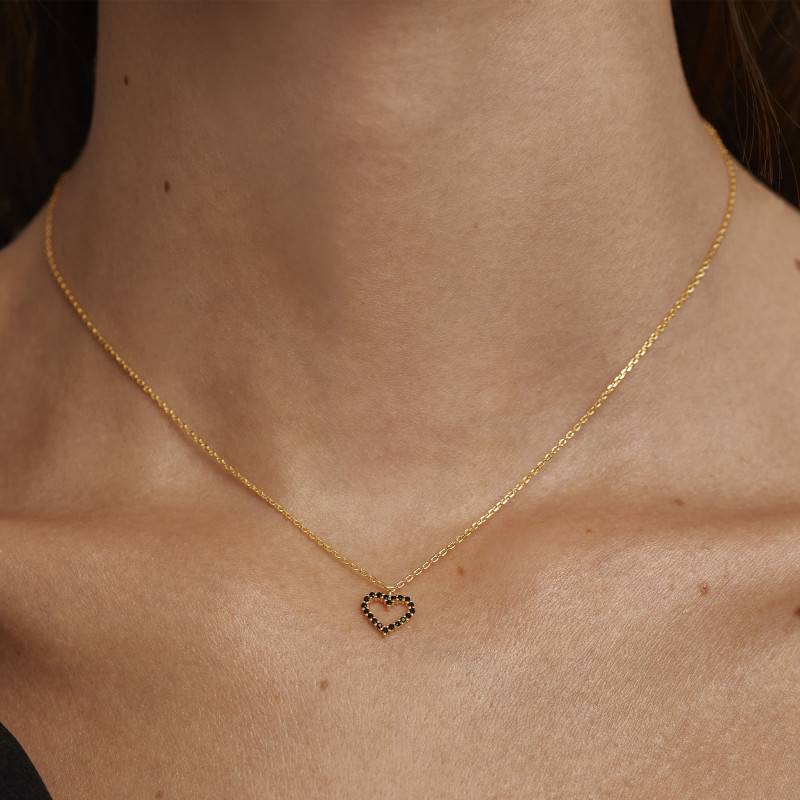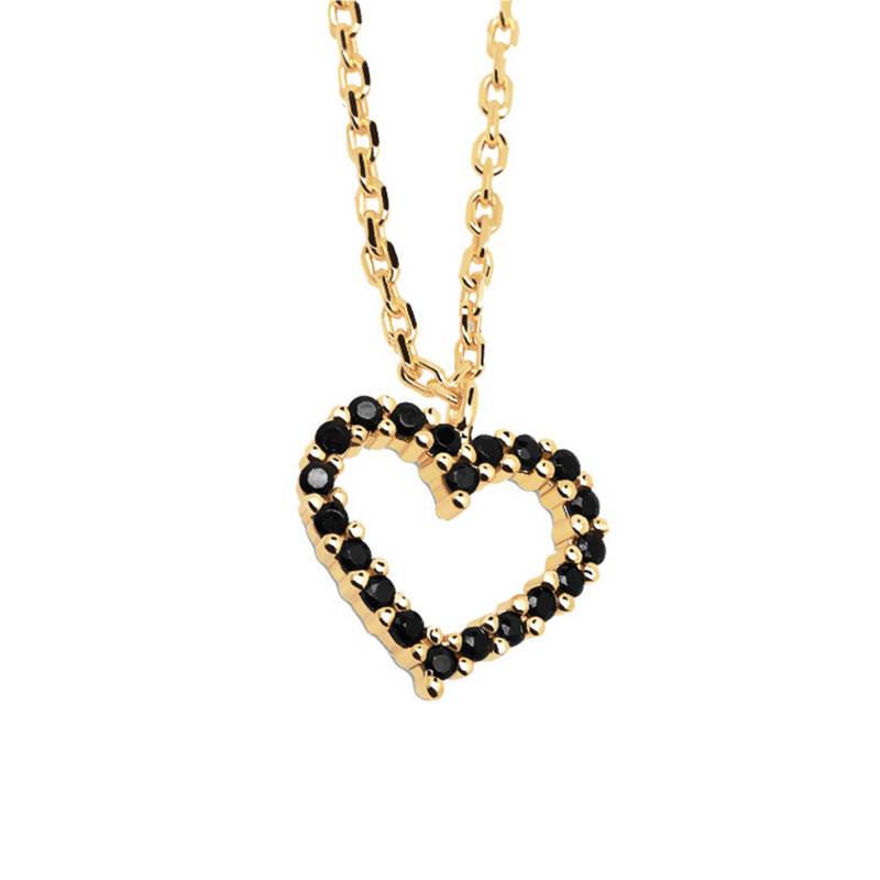 En association avec P D Paola, Ocarat vous présente ce collier d'oreilles Ultra Basics, en argent massif (925/1000) avec un plaquage en or 750/1000 (18K) (750/1000), ce collier possède un pendentif en forme de cœur composé de pierres en zircon noir.