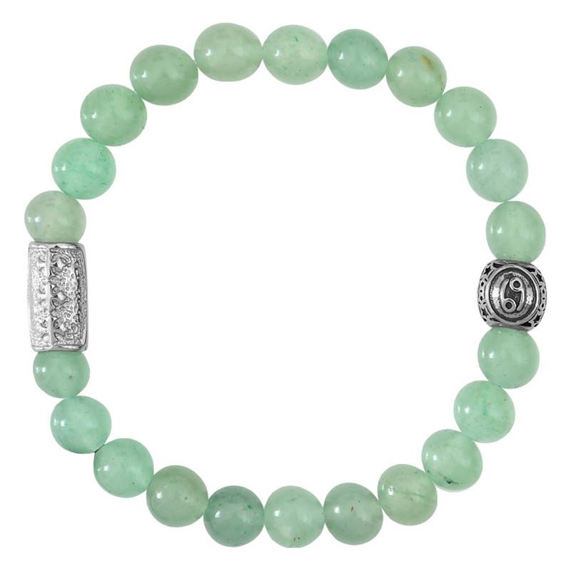Si vous êtes créatif, généreux et courageux et de signe cancer, alors ce merveilleux bracelet Zodiaque est fait pour vous. Il sera l'addition élégante et raffinée à ajouter à votre tenue en toute occasion. Il vous dévoile une ravissante ligne composée d'aventurine, une pierre aux vertus puissantes qui absorbe les ondes négatives qui vous entourent en vous apportant confiance, amour et paix intérieure. La sublime couleur verte des gemmes vous emmènera dans un voyage magique tout en dessinant les courbes de votre poignet avec douceur. Mesurant 8 mm de largeur, les pierres sont assemblées sur un fil élastique avec deux motifs en acier inoxydable.