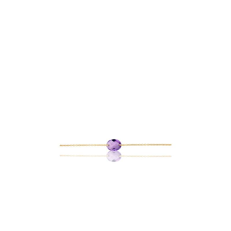 Charme intemporel pour ce ravissant bracelet constitué d'une chaîne forçat ronde en or jaune 750/1000 (18K) et d'une très jolie améthyste ovale facettée, de dimension 10*8 mm.