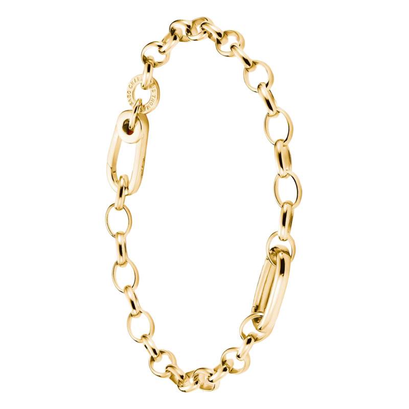 Le Bracelet Chaîne Ovale en Argent 925 Recyclé Plaqué Jaune Or 750 avec sa longueur de 15 cm, 17 cm ou 19 cm, cette œuvre d'art épouse votre poignet avec grâce. Sa maille ovale, d'une largeur de 16,50 mm et d'une épaisseur de 5 mm, brille de mille feux grâce à sa finition polie et brillante. La noblesse de l'argent massif 925 est sublimée par un plaquage en or 18 carats. La légèreté du bracelet se conjugue avec sa solidité, variant entre 8,80 g et 10,20 g selon la longueur choisie, tandis qu'un anneau délicat vient clore cette pièce.