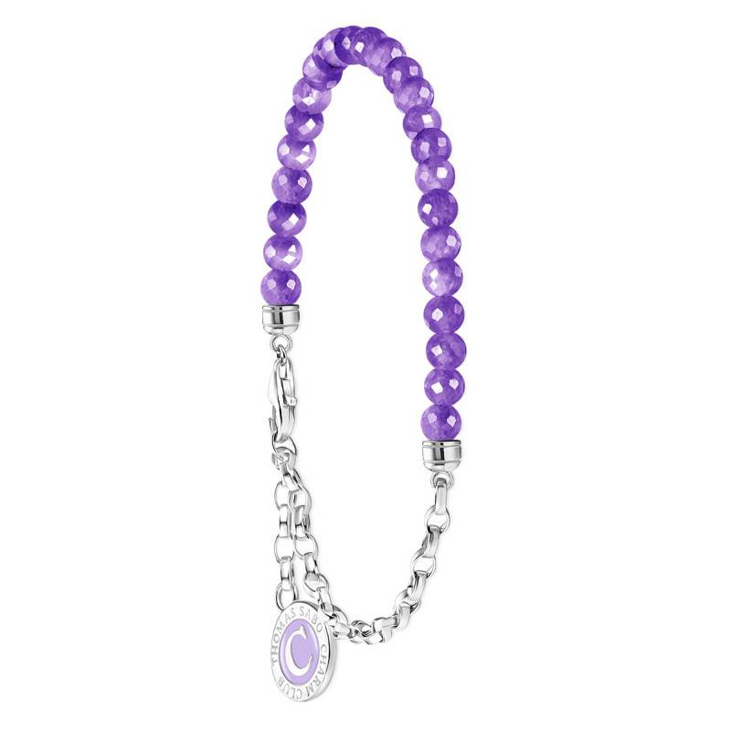 La marque présente ici un charmant bracelet en argent 925 de sa collection As We Dream. Entre modernité et tradition, celui-ci saura se faire au quotidien une place de choixdans votre collection en devenant un indispensable de toutes vos tenues. Il arbore une chaîne en maille forçat polie qui, mesurant 2,50 mm d'épaisseur, est embellie au bout par un rond de 11 mm de diamètre marqué par l'inscription Charm Club Thomas Sabo. Ce dernier apporte à l'ensemble un air dynamique par son centre peint à la main d'émail à froid violet. Maintenues par des embouts et affichant un diamètre de 4 mm, des perles imitation améthyste viennent rehausser le charme de ce bijou par une note raffinée et élégante. Facile à assortir, ce bracelet est disponible en quatre longueurs ci-dessous. Vous pourrez le manier et l'ajuster avec souplesse grâce à son fermoir mousqueton.